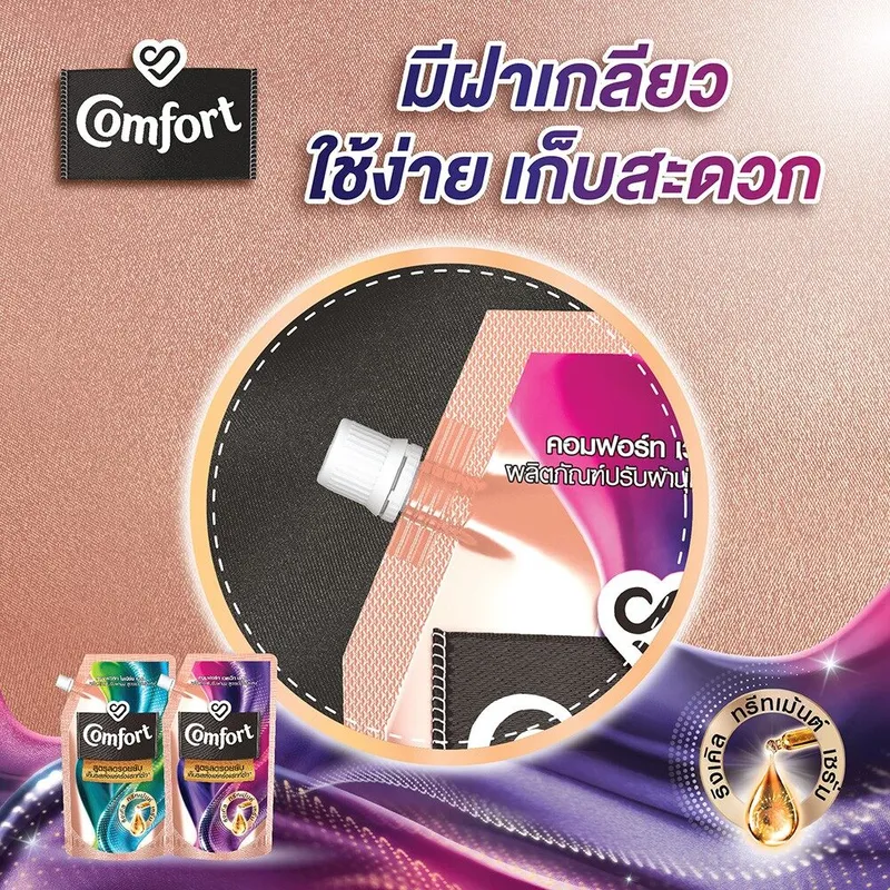 ผลิตภัณฑ์ปรับผ้านุ่มสูตรที่ดีที่สุดของคอมฟอร์ทด้วยริงเคิล ทรีทเม้นต์ เซรั่ม ที่แทรกซึมลึกสู่ใยผ้า คุณจะเห็นผลลัพธ์ที่แตกต่างตั้งแต่ครั้งแรกที่ซัก ให้ผ้าคุณเรียบ ลดรอยยับ ล็อครูปทรงของ เสื้อผ้าให้ดูเหมือนใหม่ พร้อมความหอมที่ติดทนยาวนานให้การดูแลในรูปแบบที่ไม่เคยมีมาก่อน“