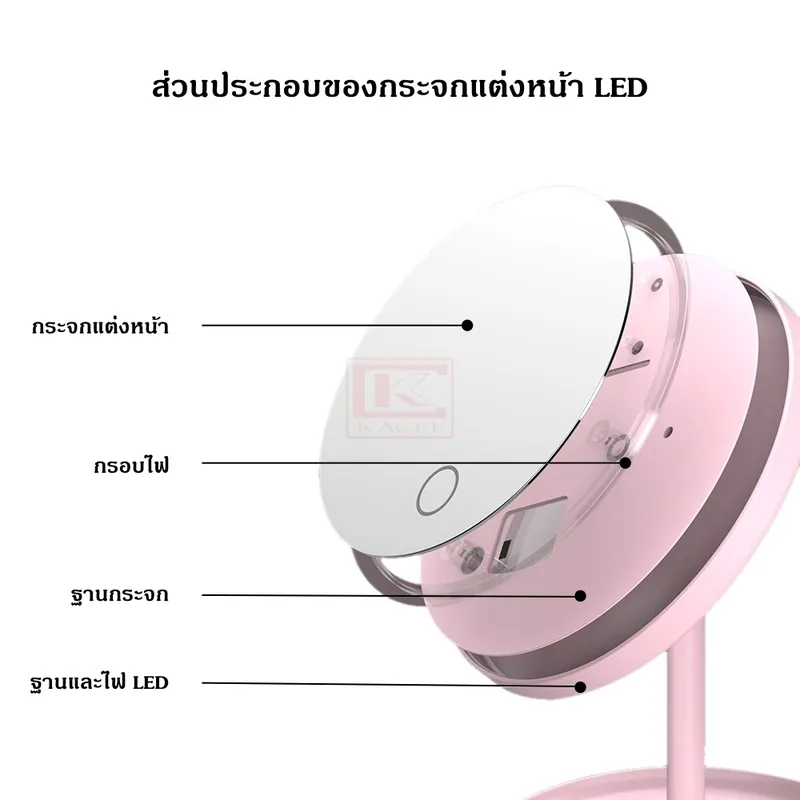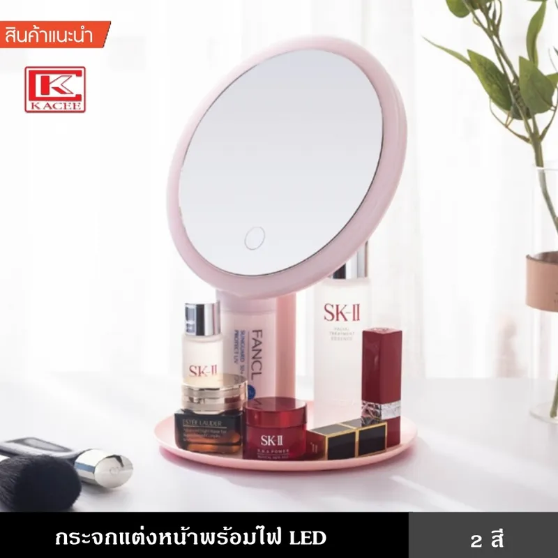 กระจก กระจกแต่งหน้ามีไฟ LED กระจกแต่งหน้า กระจกตั้งโต๊ะ กระจกมีที่วางของ กระจกส่องหน้า กระจกมีไฟรับได้ โคมไฟ