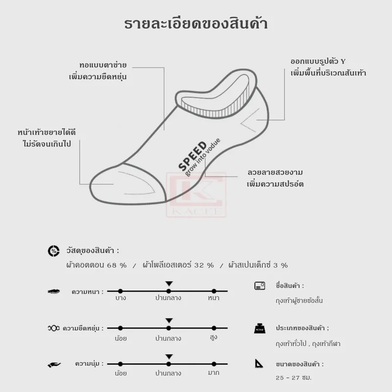 เหมาะกับ ใส่ออกกำลังกาย ใส่ป้องกันการบาดเจ็บจากรองเท้า และสวมใส่ทั่วไป