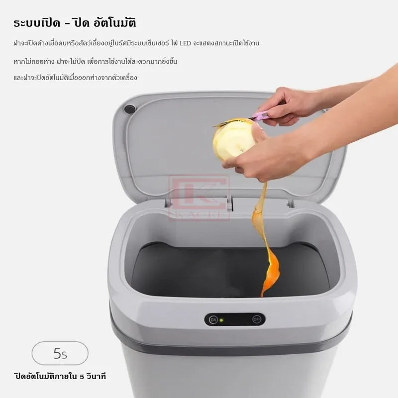 • ฝาเปิดอัตโนมัติใน 3 วินาที และปิดเองเมื่อไม่ใช้งานใน 5 วินาที