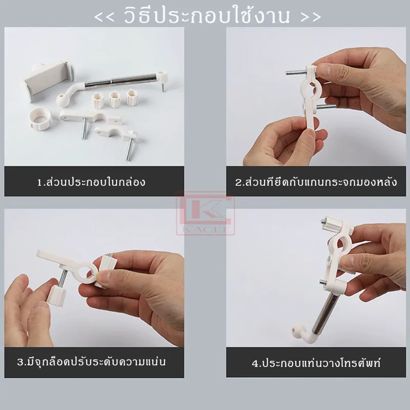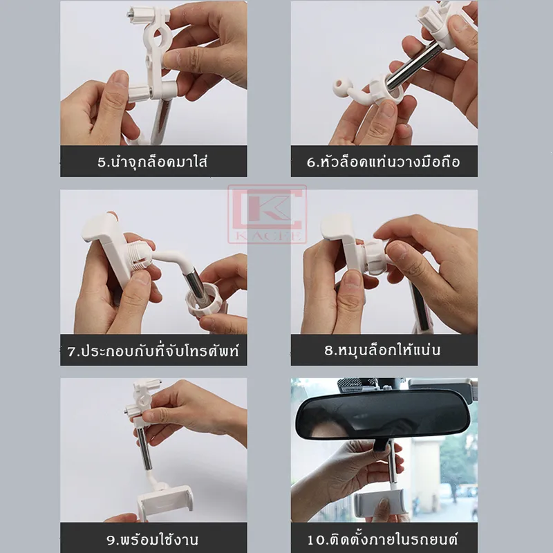 • ยึดที่วางมือถือกับขาจับแกนกระจกมองหลัง แล้วปรับล็อกให้พอดี