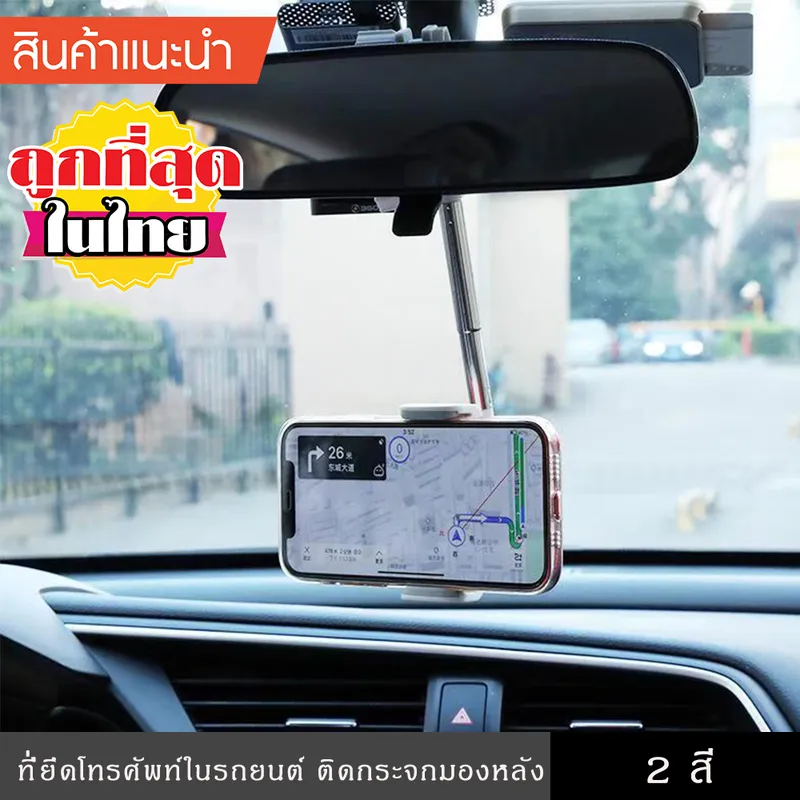 • ที่วางโทรศัพท์ในรถยนต์ รุ่นติดกระจกมองหลัง ยืดด้ามจับได้ หมุนได้ 360 องศา CAR HOLDER REAR MIRROR
