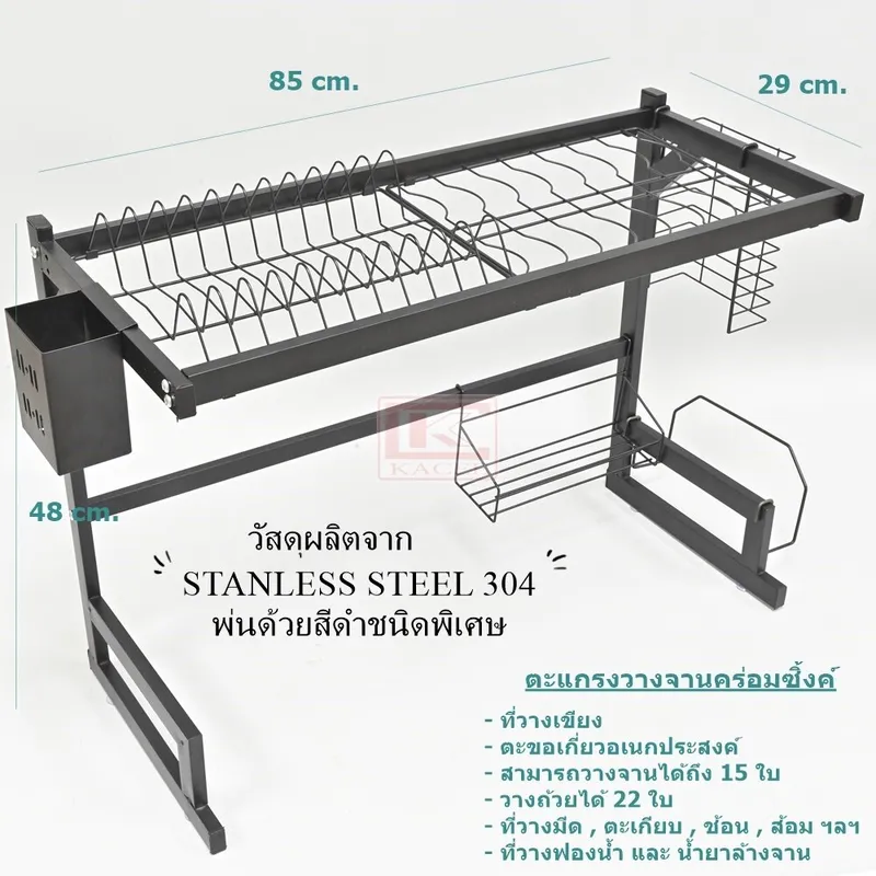 รายละเอียดสินค้า-วัสดุทำจากสแตนเลสชนิด 304 อย่างดี ชุบด้วยสีแม่เหล็กไฟฟ้า แข็งแรงทนทาน ไม่ก่อให้เกิดสนิม-ที่วางจานคร่อมซิ้งค์ล้างจาน การเก็บพร้อมระบายน้ำ ประหยัดพื้นที่- สามารถแยกพื้นที่จัดเก็บตามประเภทอุปกรณ์ต่างๆ- และยังสามารถเปลี่ยนเปลี่ยนตำแหน่งอุปกรณ์ต่างๆ ตามใจชอบ ตกแต่งชั้นวางของตนเองได้ไร้ขีดจำกัด- สามารถรองรับน้ำหนักได้มากถึง 40 กก.- ง่ายต่อการใช้งาน มีอุปกรณ์ครบชุด- เรียบง่าย ดูดี ทันสมัย- สีดำ