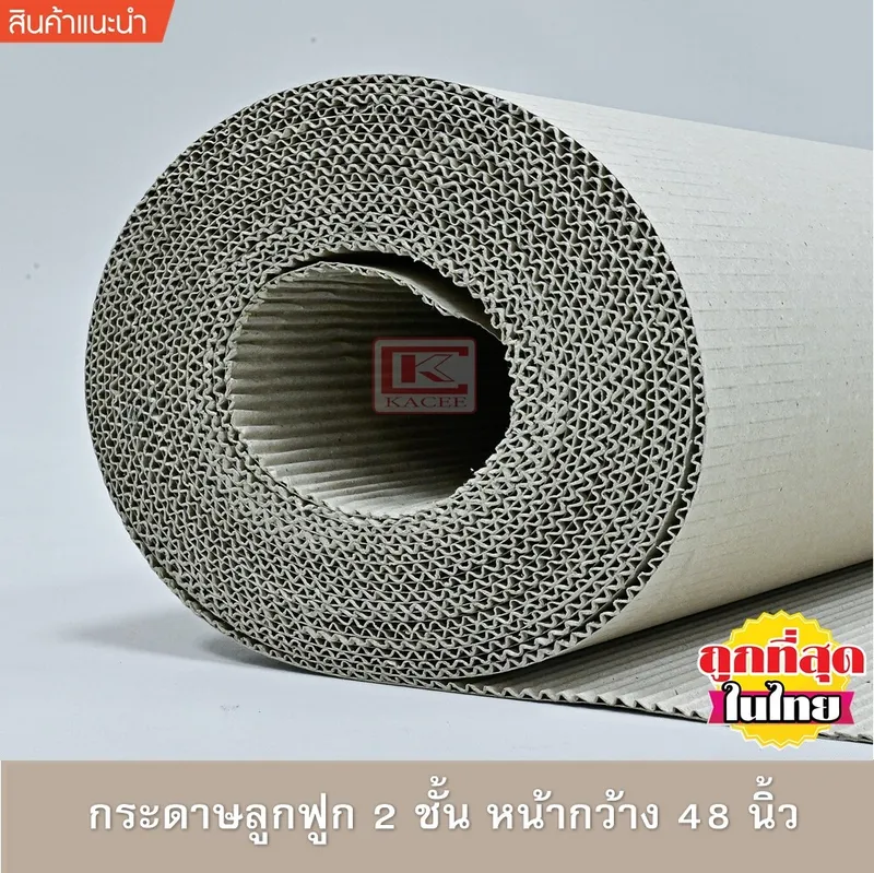 กระดาษลูกฟูก หนา 2 ชั้น หน้ากว้าง 48 นิ้ว ลักษณะกระดาษเรียบด้านหนึ่ง ลอนด้านหนึ่ง เหมาะสำหรับห่อวัสดุ สิ่งของ เพื่อป้องกันไม่ให้เกิดความเสียหาย กันการกระแทก และรอยขีดข่วนที่อาจเกิดระหว่างจัดส่ง/ขนส่ง หรือใช้รองวางสิ่งของไม่ให้เกิดรอยความเสียหายกับพื้นผิว สามารถตัดใช้ได้ตามขนาดที่ต้องการ แบ่งใช้ได้หลายครั้ง