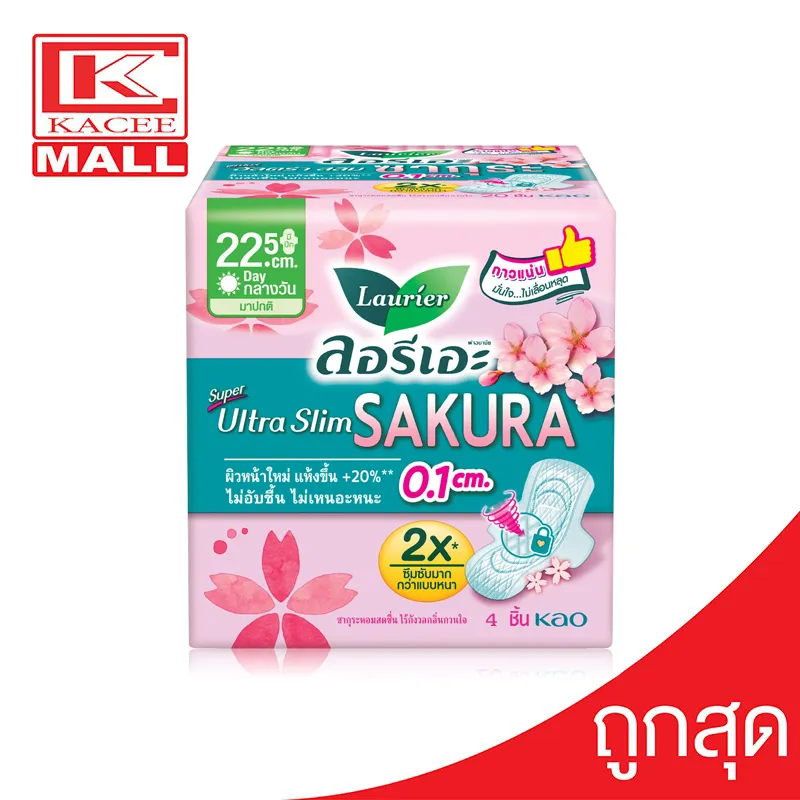 คะแนนและรีวิวของ Laurier Super Ultraslim Sakura ลอรีเอะ ซูเปอร์ อัลตร้า สลิม ซากุระ แบบบาง 22.5 ซม. แพ็ค 4 ชิ้น