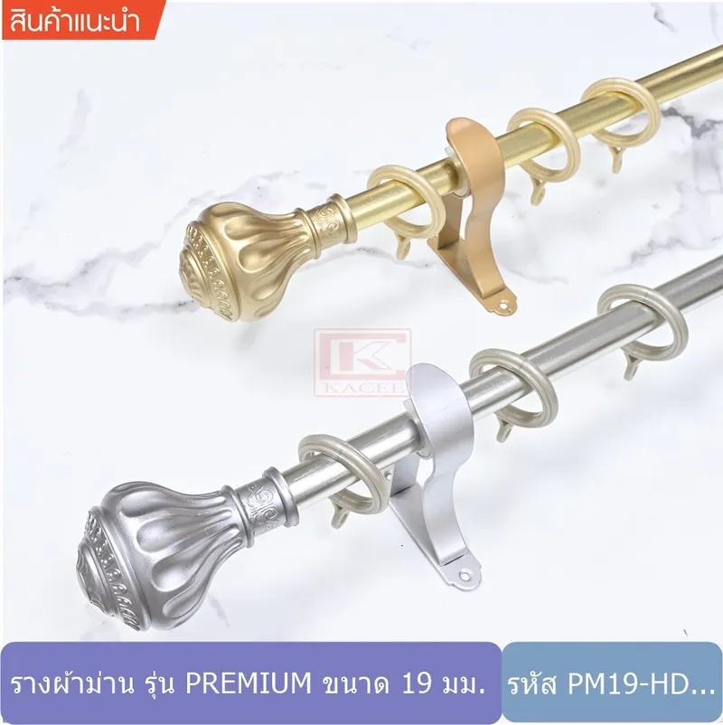 อุปกรณ์ประกอบด้วย:ราง 1.80 เมตร 1 เส้น, หัวท้าย 1 คู่, ขายึดราวม่าน 3 อัน, ห่วง 22 อัน