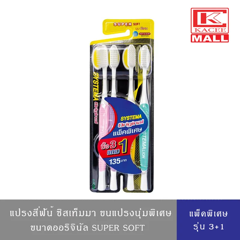 แปรงสีฟัน ซิสเท็มมา รุ่นหัวแปรง ขนแปรง นุ่มพิเศษ ขนาดออริจินัล [แพ็ค 3 ฟรี 1]