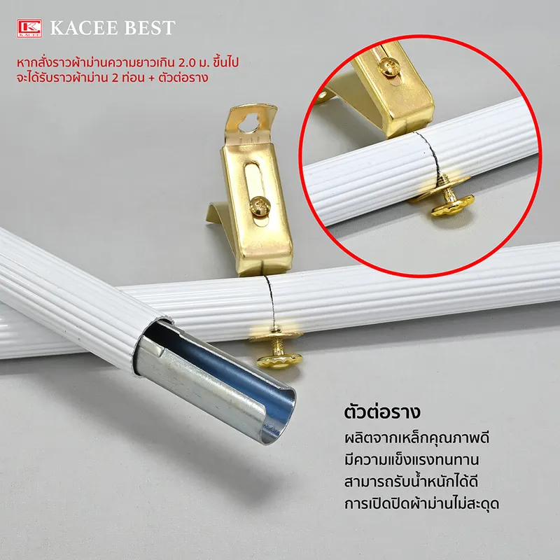 KACEE ราวผ้าม่าน รางผ้าม่าน 25 มม. รางผ้าม่านสำหรับใส่ม่านตาไก่ สีขาว จับกลางน็อตสีทอง