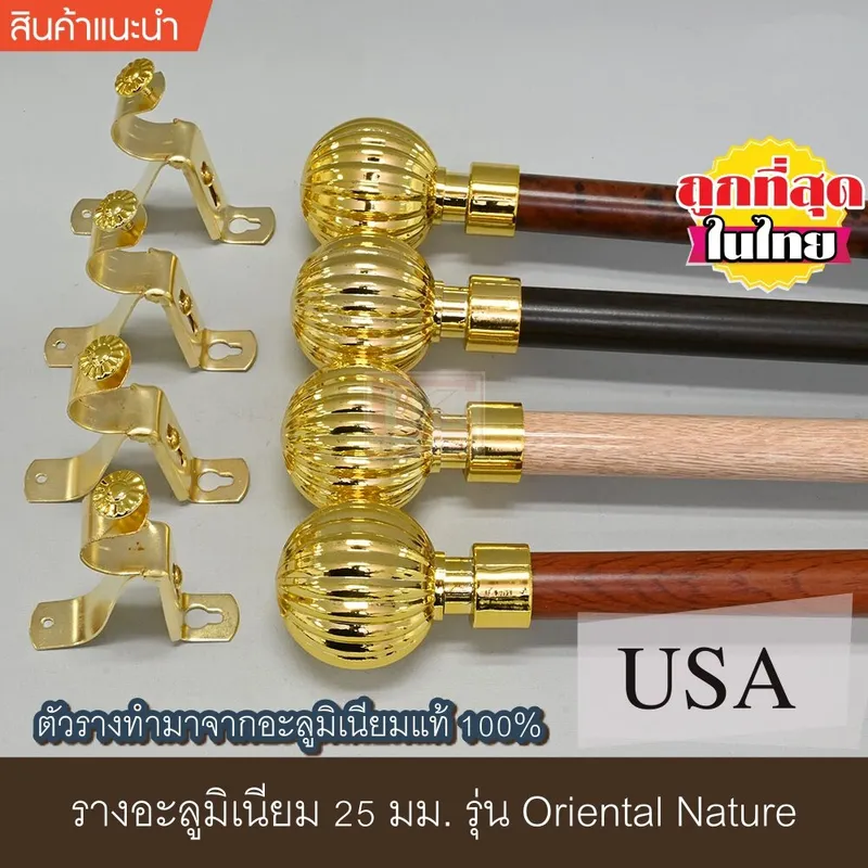 อุปกรณ์หัวรางและจับกลางเป็นสีทอง มีความเงางาม โดดเด่น
