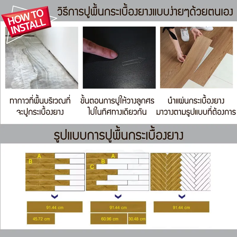 • ขนาดแผ่น 91.44(ยาว) x 15.24(กว้าง) x 0.2(หนา) ซม.