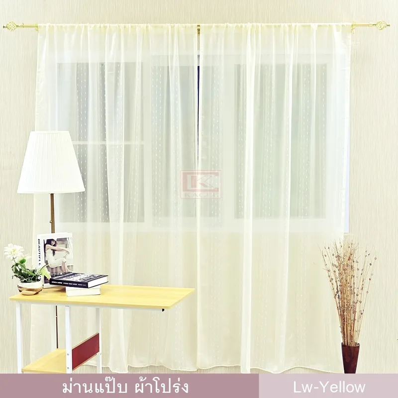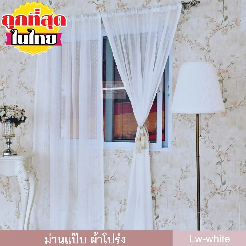 ผ้าโปร่ง ผ้าม่าน ผ้าม่านสำเร็จรูป ผ้าม่านแป๊บ+โซ่ถ่วงชายล่าง รุ่น Lilly ( 1ผืน)