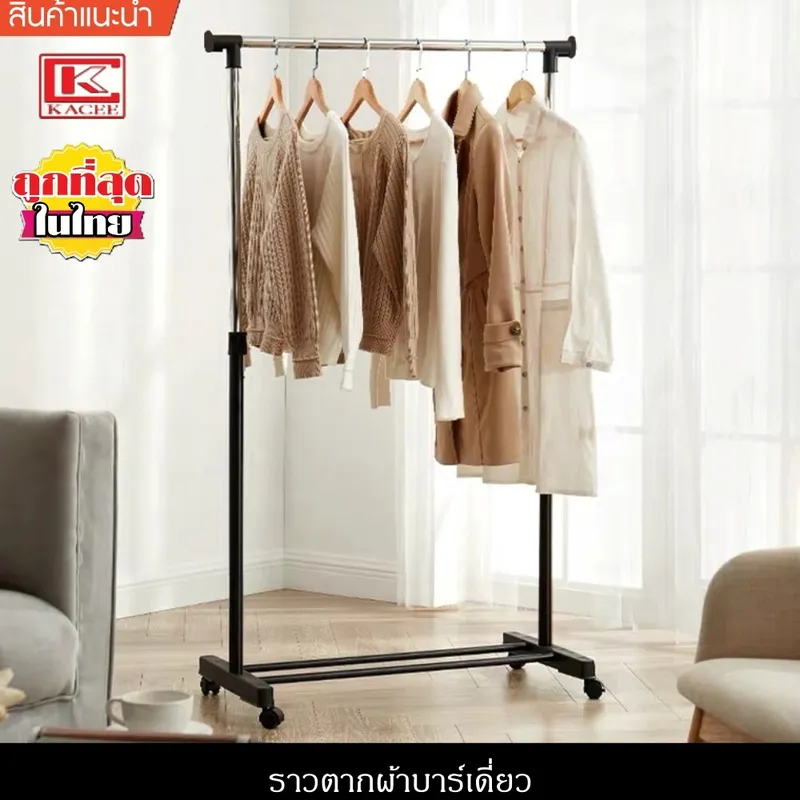 ราวตากผ้าสแตนเลส บาร์เดี่ยว โครงเหล็กชุบโครเมียม ล้อหมุน 360 องศา