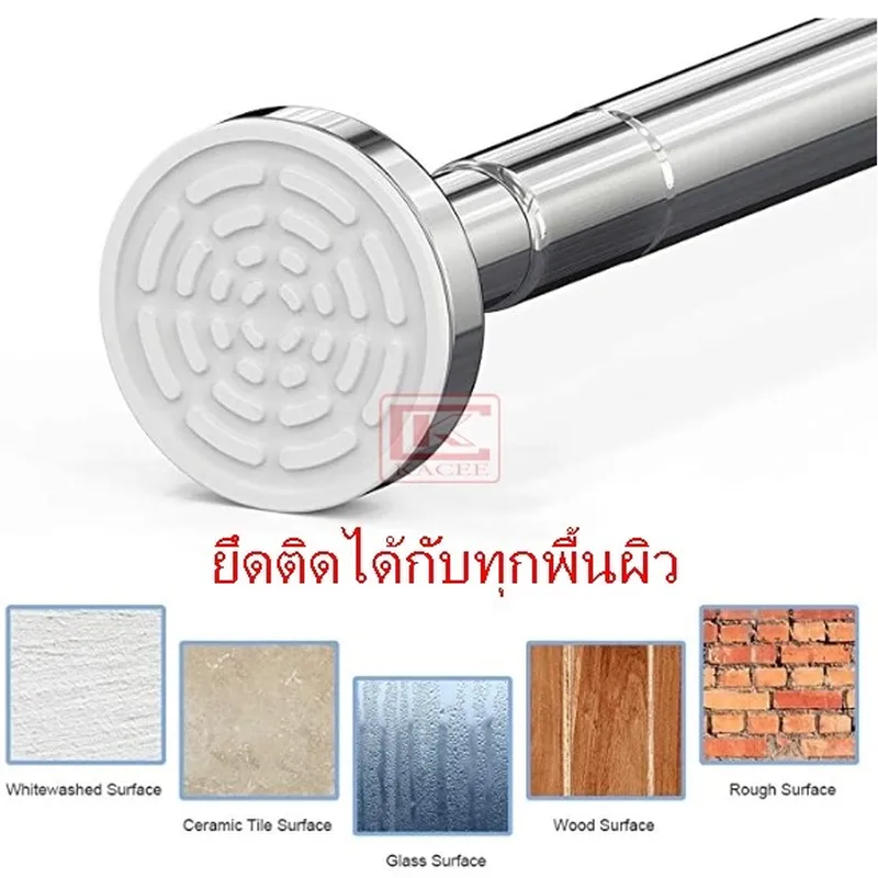 KACEE ราวสแตนเลส 304 ไร้สนิม ราวม่านห้องน้ำ ปรับขนาดได้ตั้งแต่ 85-260 ซม. ยืดหดได้ไม่ต้องเจาะผนัง