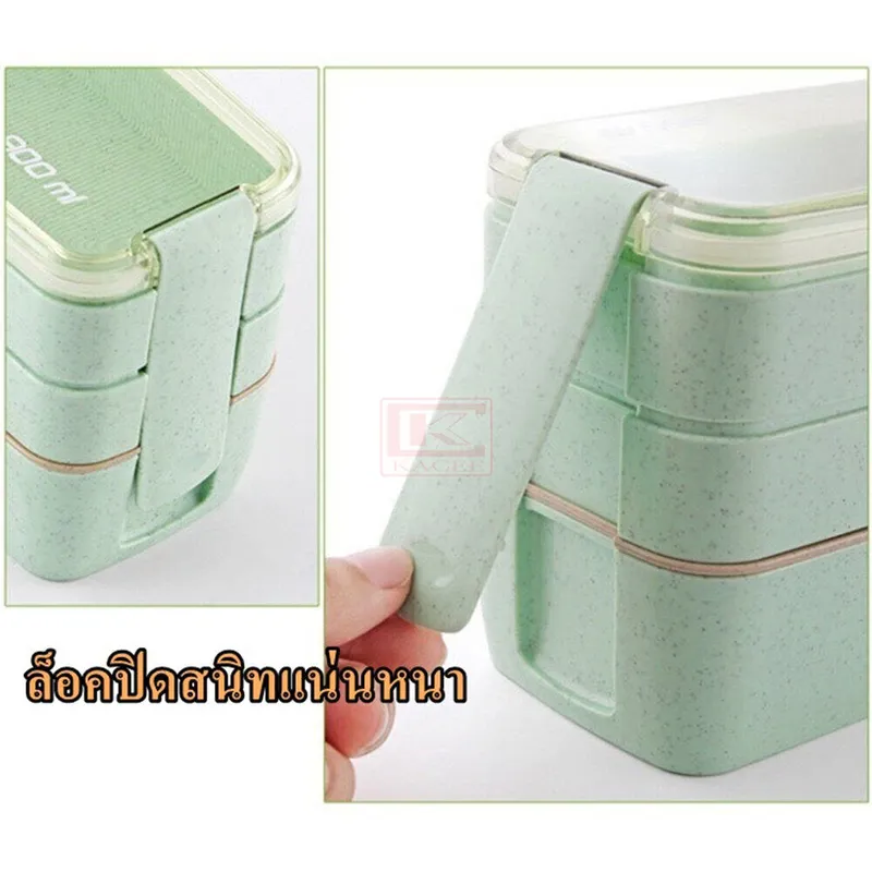 กล่อง กล่องอาหาร ปิ่นโต 3 ชั้น ใส่อาหาร พร้อมช้อนส้อม ช่องแบ่งสัดส่วนปรับได้ กล่องใส่อาหาร กล่องข้าว พกพา อาหารกลางวัน มีช่องแบ่ง
