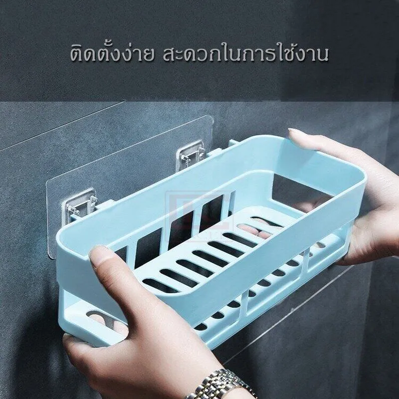 ชั้นวางของติดผนัง ตะกร้าทรงเหลี่ยม (สีขาว สีครีม และ สีชมพู) ไม่ต้องเจาะผนัง สามารถรับน้ำหนักได้ถึง 5 กิโลกรัม ชั้นวางของในห้องน้ำ ตะกร้าวางของติดผนัง ชั้นวางของพลาสติก ชั้นวางของ Basket Shelf Storage Rack