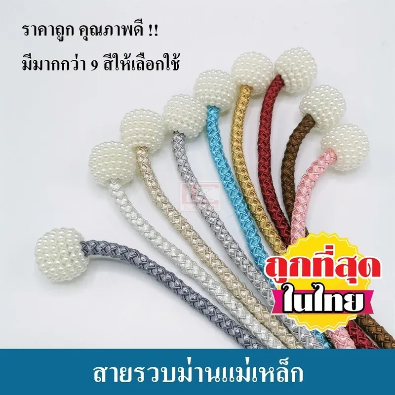 ส่วนบริเวณหัวสายรวบม่านนั้นประดับด้วยมุกล้อมรอบ โดยมีแม่เหล็กเป็นตัวกลาง ช่วยในการดึงดูดรวบเก็บผ้าม่านได้อย่างง่ายดาย