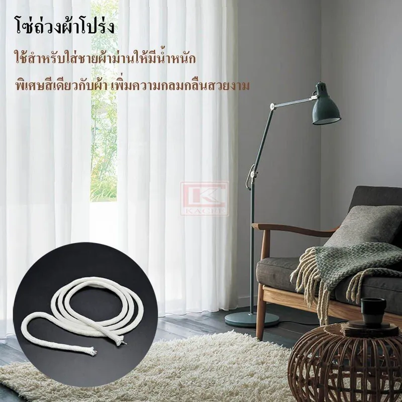 ใช้สำหรับใส่ชายผ้าม่าน โดยเฉพาะผ้าโปร่ง เพื่อถ่วงน้ำหนักผ้าม่าน ทำให้ผ้าม่านมีรูปทรงสวยงาม พร้อมเป็นสีขาว สีเดียวกับผ้าม่านเพิ่มความกลมกลืมมากยิ่งขึ้น