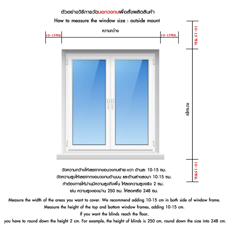 ความสูง จะเผื่อด้านบนอย่างน้อย 10 ซม. และด้านล่างประมาณ 15 ซม.