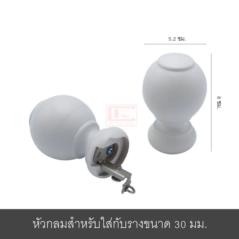 1. เส้นที่ 1 หัวกลม 30 มม. :ราวผ้าม่าน ขนาด 1.20 ม. 1 เส้น (รวมหัวแล้ว), หัวกลม 1 คู่, ลูกล้อ 16 ตัว, จับกลาง 2 ชั้น 2 อัน