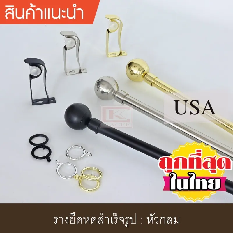 KACEE ราวผ้าม่าน รางม่าน 19 มม. ยืดหด รุ่น Milano สีทอง (JN-YB04) หัวรังนก