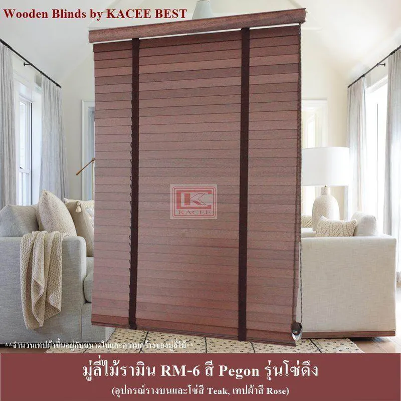 KACEE มู่ลี่ มู่ลี่ไม้ มู่ลี่ไม้รามิน สีพีกอน (Pegon) เทปผ้าสีโรส (Rose) รุ่นโซ่ดึง ขนาดใบ 35 มม.