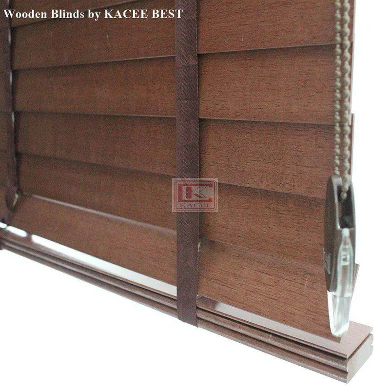 KACEE มู่ลี่ มู่ลี่ไม้ มู่ลี่ไม้รามิน สีทีค(Teak) เทปผ้าสีทีค (Teak) รุ่นเชือกปรับ