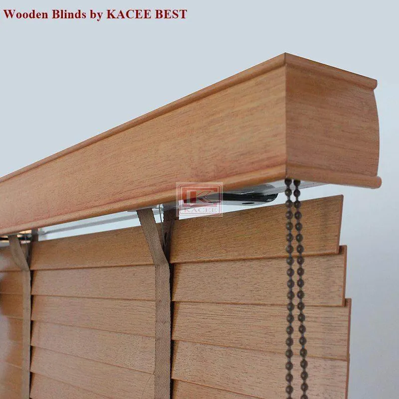 KACEE มู่ลี่ มู่ลี่ไม้ มู่ลี่ไม้รามิน สีโกลเด้นโอ๊ค (Golden oak) รุ่นโซ่ดึง ขนาดใบ 50 มม.
