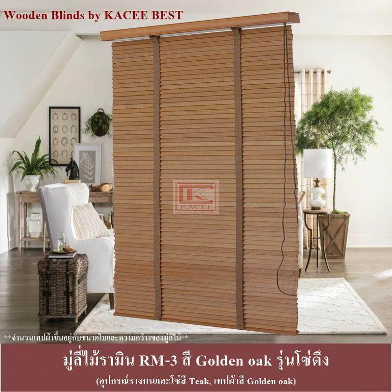 KACEE มู่ลี่ มู่ลี่ไม้ มู่ลี่ไม้รามิน สีโกลเด้นโอ๊ค (Golden oak) รุ่นโซ่ดึง ขนาดใบ 35 มม.