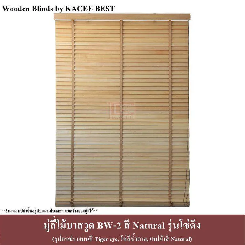 KACEE มู่ลี่ มู่ลี่ไม้ มู่ลี่ไม้บาสวูด สีเนเชอรัล (Natural) รุ่นโซ่ดึง ขนาดใบ 35 มม.