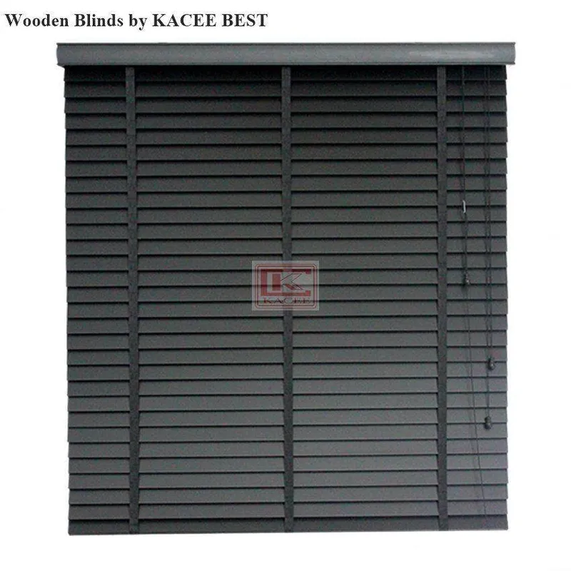 KACEE มู่ลี่ มู่ลี่ไม้ มู่ลี่ไม้บาสวูด สีดำ (Black) รุ่นเชือกปรับ ขนาดใบ 25 มม.