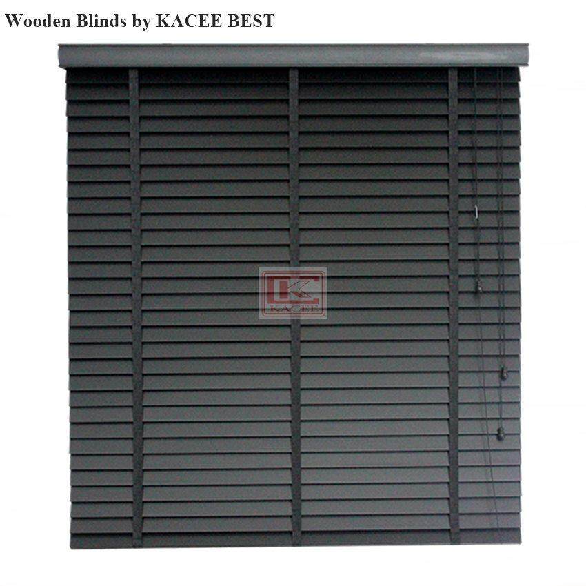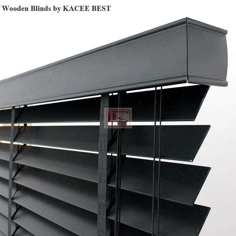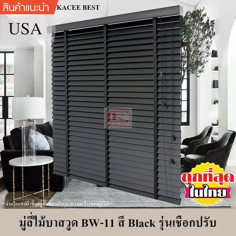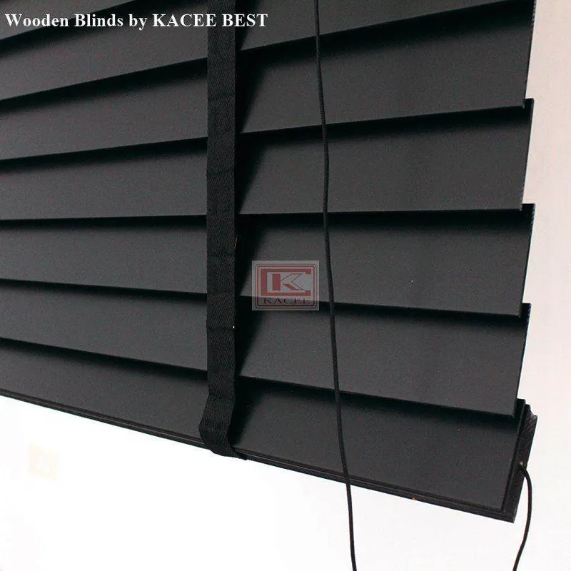 KACEE มู่ลี่ มู่ลี่ไม้ มู่ลี่ไม้บาสวูด สีดำ (Black) รุ่นเชือกปรับ ขนาดใบ 50 มม.