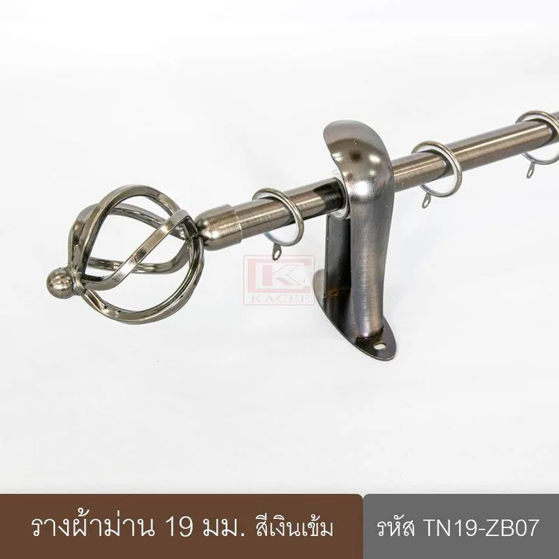 KACEE ราวผ้าม่าน รางม่าน 19 มม. รางเหล็ก สีเงินเข้ม (TN19-CB07)