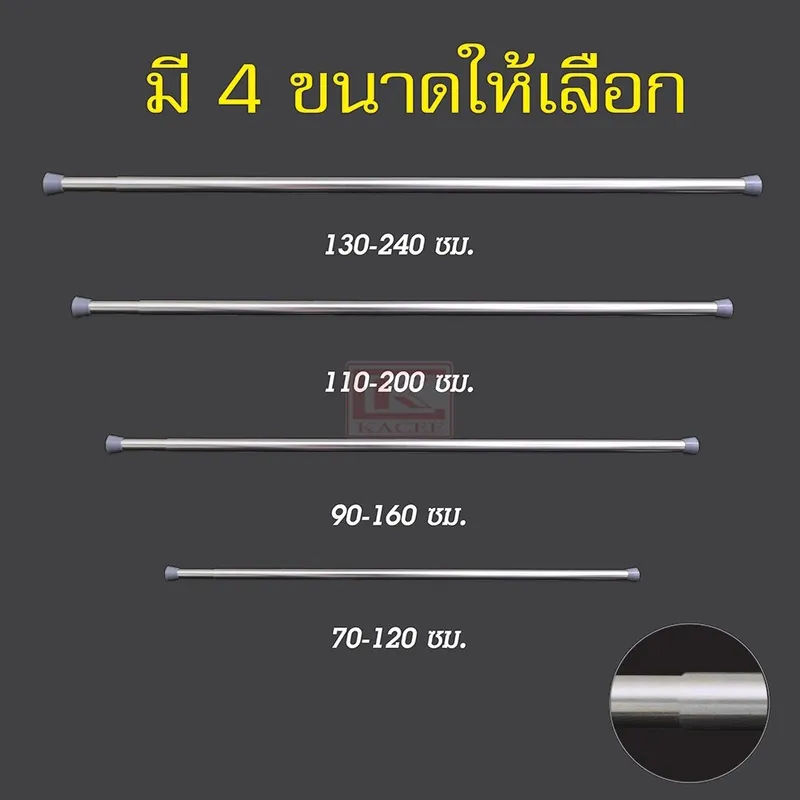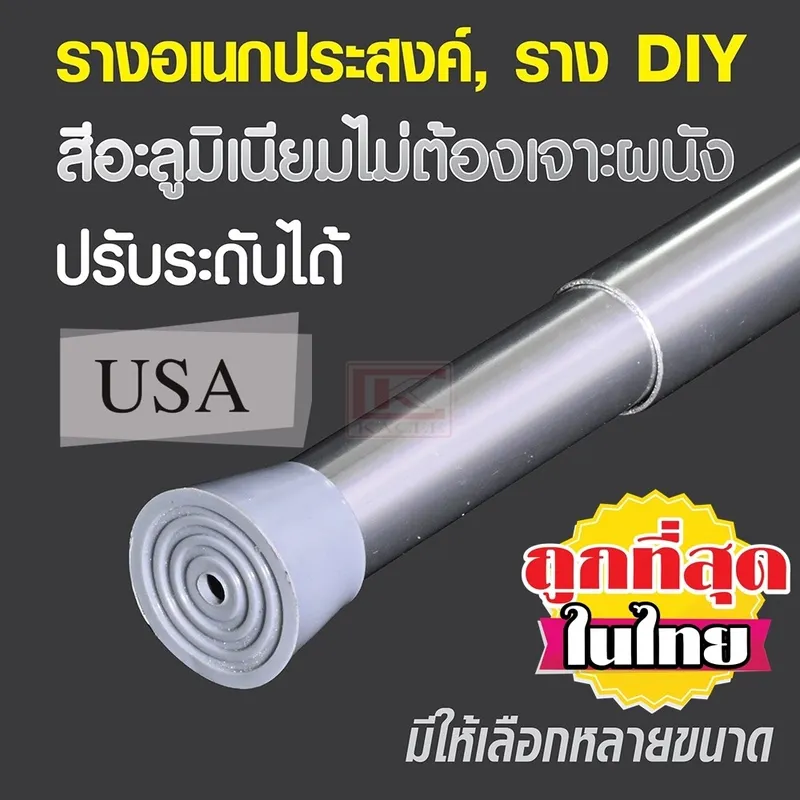 • ผลิตจากอลูมิเนียม มีน้ำหนักเบา สีมิเนียม ไม่ใช่รางยืดหด