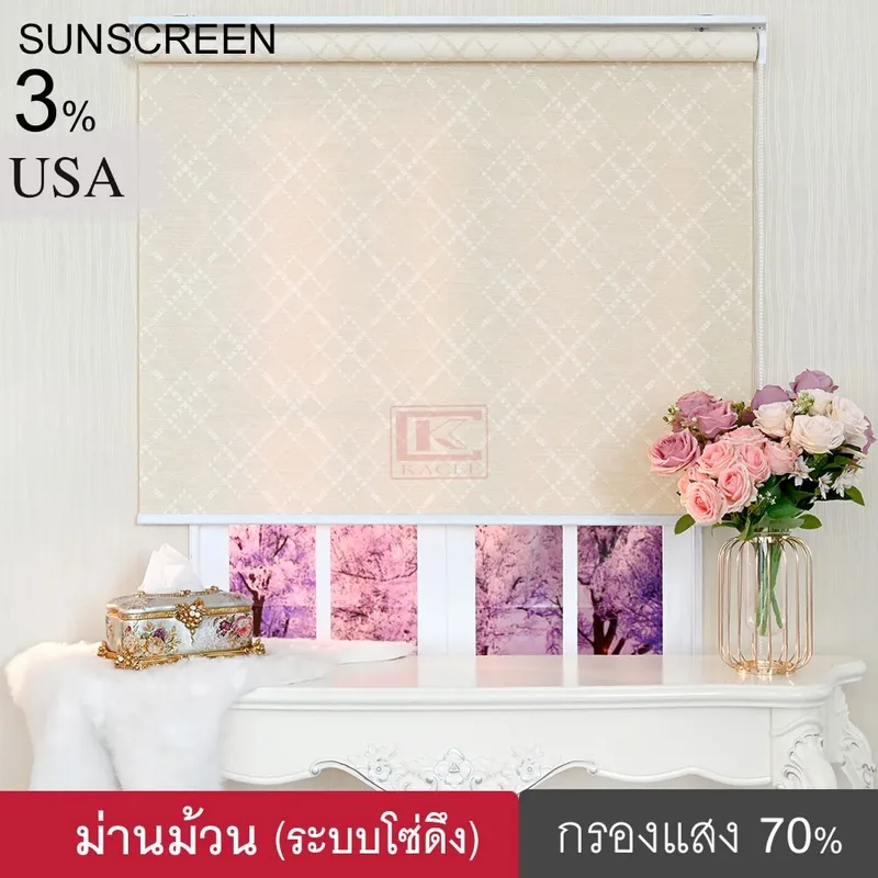 KACEE ม่านม้วน รุ่น Jacquard Screen (2022 มี 3 สี) ม่านกันแสง SUNSCREEN 3% ม่านม้วนหน้าต่างพร้อมใช้งาน ม่านบังแดด ม่านกันยูวี ม่านปรับแสงได้ ระบบโซ่ดึง