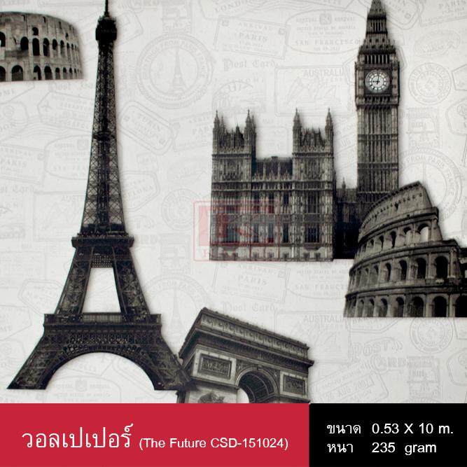 KACEE วอลเปเปอร์ Wallpaper ยาว10เมตร ไวนิล หนา ลายหอไอเฟล สวยหรูไม่ตกยุค (6 ม้วนแถมฟรีกาว 1 ชุด * ตามเงื่อนไขที่บริษัทกำหนด)