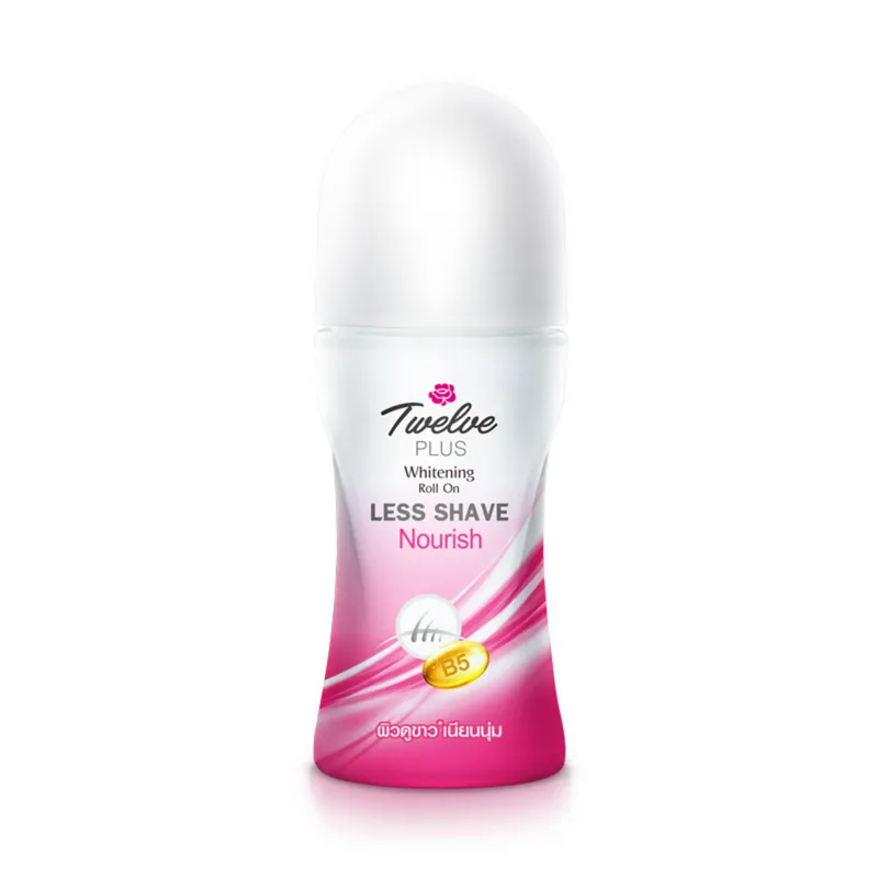ทเวลฟ์พลัส โรลออน สูตรไวท์เทนนิ่ง เลสเชฟ แอนด์ นูริช เพื่อผิวใต้วงแขนเนียนนุ่มชุ่มชื่นอย่างเป็นธรรมชาติ ผสมเลสเชฟ เซรั่ม นวัตกรรมเฉพาะของทเวลฟ์พลัส ช่วยลดการเกิดขนลงถึง 20% เมื่อใช้เป็นประจำ พร้อมโปรวิตามินบี 5 และแอคทีฟ ไวท์คอมเพล็กซ์ ช่วยเก็บความชุ่มชื่นของผิวพร้อมปรับผิวให้ขาวกระจ่างใส จุดด่างดำดูจางลง ปราศจากแอลกอฮอล์ทำร้ายผิว ผ่านการทดสอบจากผู้เชี่ยวชาญด้านผิวหนังว่าอ่อนโยนต่อทุกสภาพผิว ปกป้อง มั่นใจยาวนาน 48 ชั่วโมง