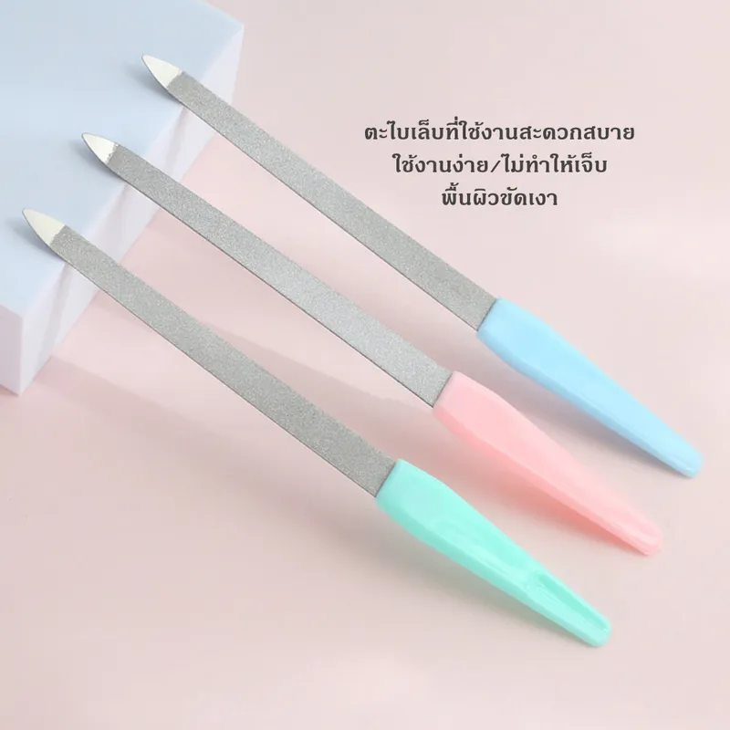 - ตะไบเล็บสแตนเลส คละสี มี 3 ขนาด 5 นิ้ว 6 นิ้ว 7 นิ้ว ตะไบ ตะไบเล็บ ตะไบขอบเล็บ ตะไบซอกเล็บ แต่งเล็บ ทำเล็บ เนื้อละเอียด วัสดุสแตนเลสเกรดดี ไม่เป็นสนิม ใช้งานได้ 2 ด้าน ด้ามจับพลาสติก แข็งแรง ทนทาน