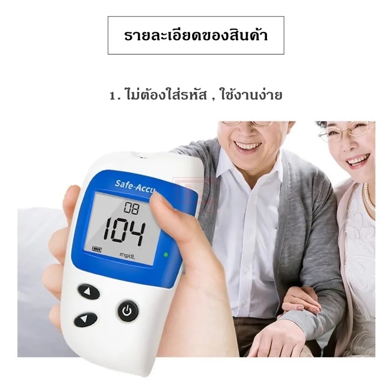 • ในชุดประกอบด้วย : เครื่องตรวจน้ำตาลในเลือด*1 เครื่อง / แถบตรวจน้ำตาล*1 กระปุก / เข็มเจาะเลือด*1 กล่อง / ปากกาเจาะเลือด*1 ด้าม / ถ่าน*2 ก้อน / กระเป๋าเก็บอุปกรณ์*1 ใบ / คู่มือสินค้า *1 เล่ม