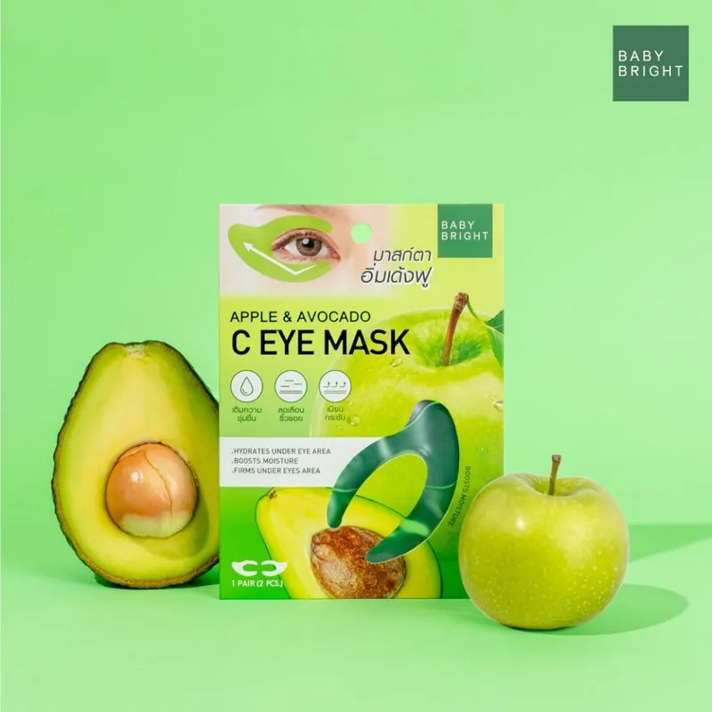 เบบี้ไบร์ท แอปเปิ้ล แอนด์ อะโวคาโด ซี อายมาสก์ แผ่นเจลมาสก์รอบดวงตารูปตัวซี เติมเต็มความชุ่มชื้นและลดริ้วรอยให้ผิวรอบดวงตา ด้วยสารสกัดจากสเต็มเซลล์ของแอปเปิ้ล (Apple Stem Cell Extract) สารสกัดจากอะโวคาโด (Avocado Extract) และเรตินอล (Retinol) ที่อุดมไปด้วยวิตามิน A, D และ E เหมาะกับทุกสภาพผิว โดยเฉพาะผิวแห้งและขาดความยืดหยุ่น ช่วยเพิ่มปริมาณคอลลาเจนบำรุงให้ผิวแลดูอ่อนเยาว์ ช่วยลดเลือนริ้วรอยอย่างมีประสิทธิภาพ รวมคุณประโยชน์จากเปปไทด์ที่ช่วยในการบำรุงผิวพรรณให้เรียบเนียน ทั้งยังกักเก็บความชุ่มชื้น ให้ผิวรอบดวงตานุ่มชุ่มชื้นดูมีชีวิตชีวายิ่งขึ้น