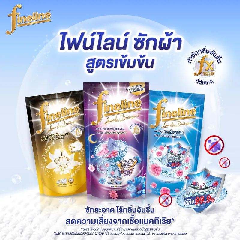 ไฟน์ไลน์ ผลิตภัณฑ์น้ำยาซักผ้า สูตรเข้มข้น สำหรับกลางคืน (สีม่วง)1,400 มล.ผลิตภัณฑ์ซักผ้าสูตรเข้มข้นสำหรับกลางคืน ช่วยขจัดคราบฝังลึก พร้อมกลิ่นหอม ลดกลิ่นอับชื้น เหมาะสำหรับซักผ้าเวลากลางคืน