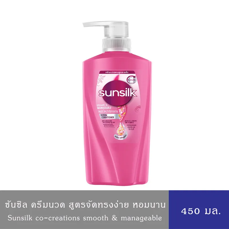 รายละเอียดสินค้า ซันซิล สมูท แอนด์ เมเนจเอเบิ้ล สีชมพู ผมมีน้ำหนัก จัดทรงง่าย ครีมนวด 400 มล. Sunsilk Smooth and Manageable Pink Conditioner 400 ml.