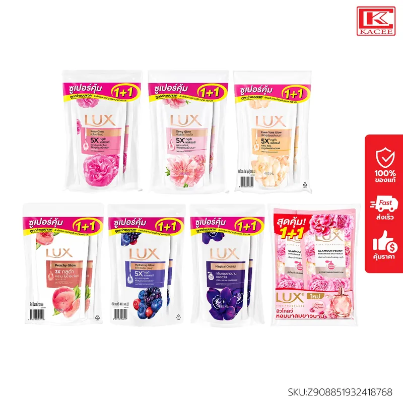 ลักส์ ครีมอาบน้ำ พีนีโอชมพู(ถุงเติม) แพ็คคู่ 400 มล. ลักส์ แกลมเมอร์ พีโอนี ฟราแกรนซ์ บอดี้วอช ครีมอาบน้ำ ผสานกลูต้า