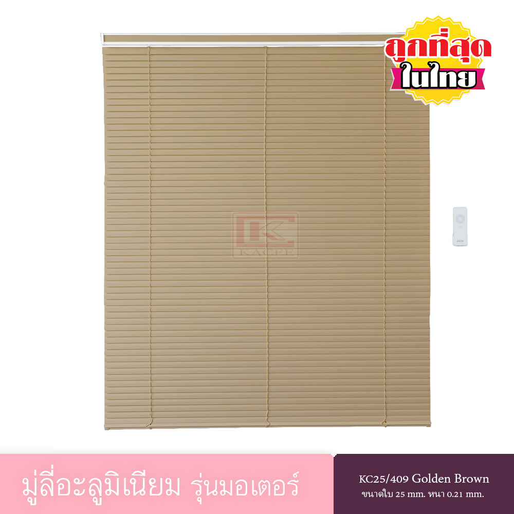 * ใน 1 ชุดจะประกอบด้วย : มู่ลี่อะลูมิเนียมขนาดใบกว้าง 25 มม. หนา 0.21 มม. รหัส KC25/409 สี Golden Brown
