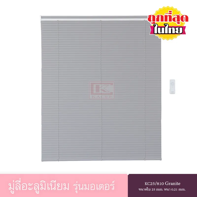 * ใน 1 ชุดจะประกอบด้วย : มู่ลี่อะลูมิเนียมขนาดใบกว้าง 25 มม. หนา 0.21 มม. รหัส KC25/810 สี Granite