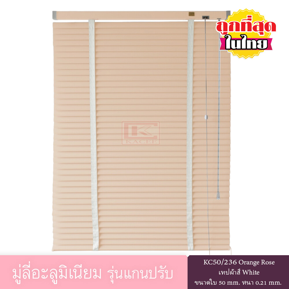 KACEE มู่ลี่ มู่ลี่อะลูมิเนียม มู่ลี่อลูมิเนียม ม่านหน้าต่าง รุ่นแกนปรับ เทปผ้า ใบขนาด 50 มม. สีโอรส KC50/236 Orange Rose หนา 0.21 มม. เทปผ้าสีขาว