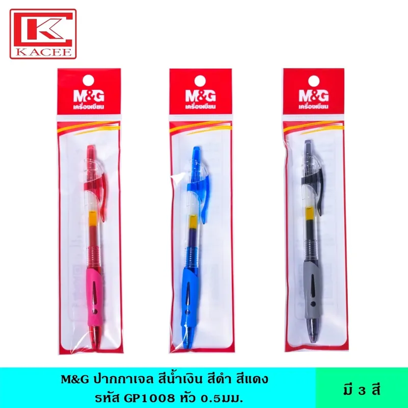 คะแนนและรีวิวของ M&G ปากกาเจล มี 3 สี น้ำเงิน ดำ แดง แพ็ค1ด้าม GP1008 หัว 0.5มม. ปากกาเจลแบบกด หมึกสีสด เขียนลื่น ปากกา ปากกาเจล เอ็มแอนด์จี