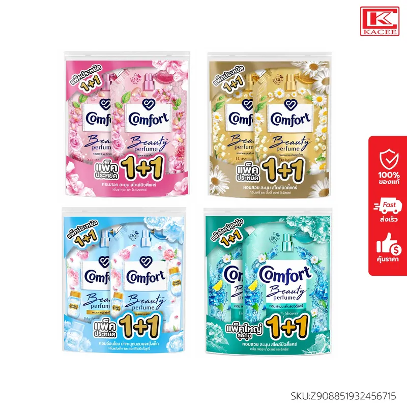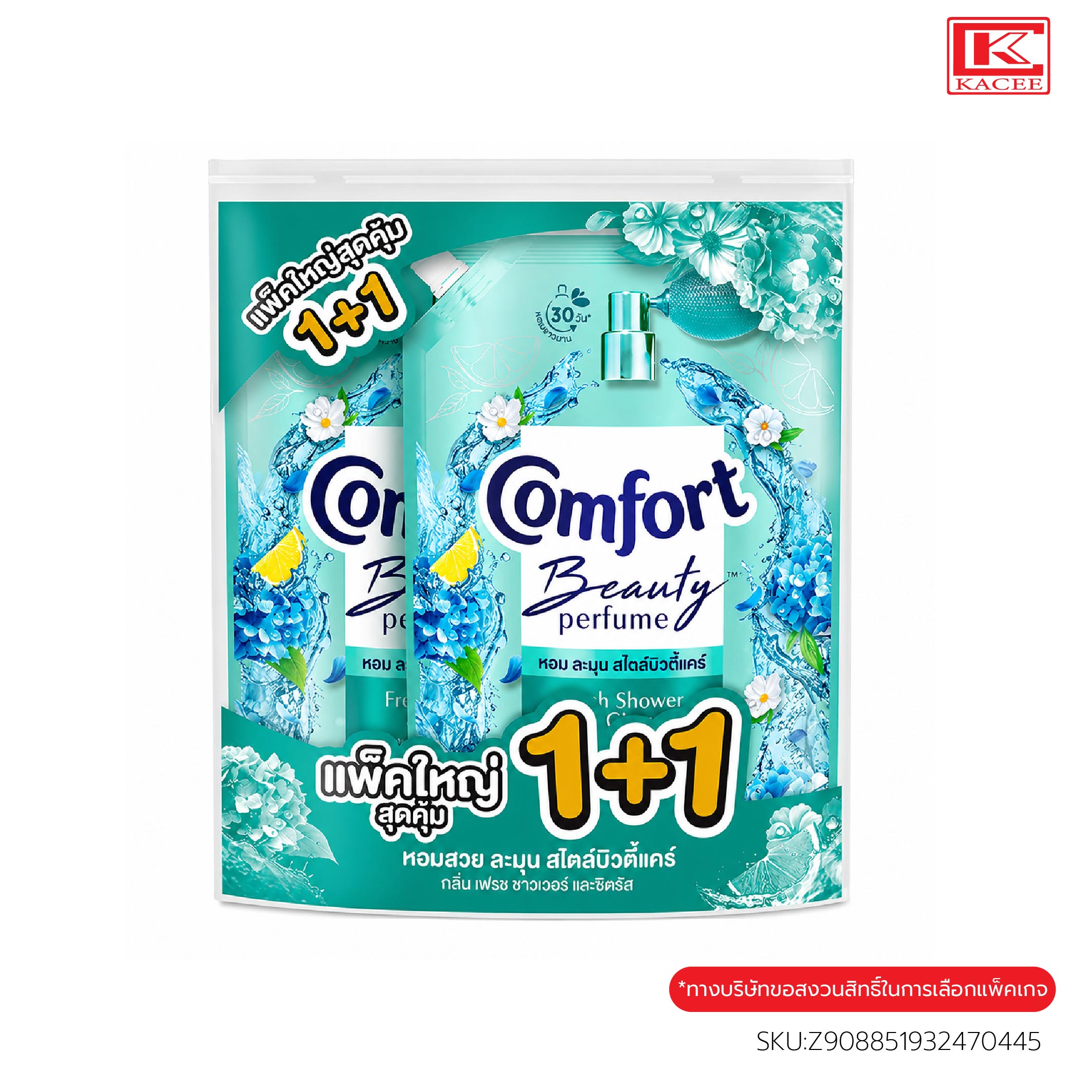 Comfort Beauty Perfume คอมฟอร์ท น้ำยาปรับผ้านุ่ม บิวตี้ เพอร์ฟูม 470 มล.(แพ็คคู่1+1) คอมฟอร์ท บิวตี้ เพอร์ฟูม หอมละมุน ราวกับใช้ผลิตภัณฑ์บิวตี้แคร์ด้วยการปรุงน้ำหอมที่มีความพิถีพิถันเช่นเดียวกันกับผลิตภัณฑ์ดูผิวและความงาม ชั้นนำในตลาด คัดสรรจากวัตถุดิบเลอค่า ก่อเกิดเป็นกลิ่นหอมละมุนเหนือระดับที่คอมฟอร์ทอยากมอบให้ หอมราวกับใช้ผลิตภัณฑ์ บิวตี้ แคร์ พร้อมให้กลิ่นหอมติดทนยาวนาน 30 วัน ให้คุณรู้สึกสดชื่น มั่นใจ ในทุกๆวัน