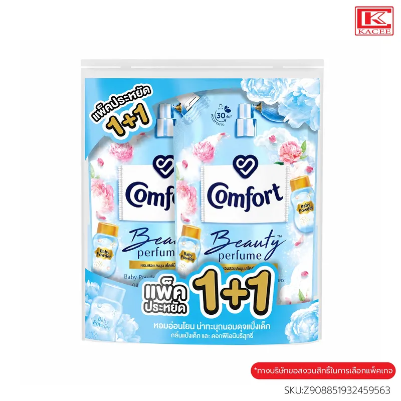 คอมฟอร์ท บิวตี้ เพอร์ฟูม น้ำยาปรับผ้านุ่ม กลิ่นแป้งเด็กและพีโอนีบริสุทธิ์ ขนาด 470 ml.x2