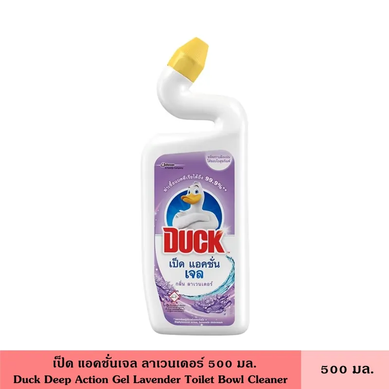เป็ด แอคชั่น เจล ผลิตภัณฑ์ทำความสะอาดโถสุขภัณฑ์ กลิ่นลาเวนเดอร์ ทำความสะอาดโถสุขภัณฑ์ในห้องน้ำได้อย่างหมด พร้อมฤทธิ์ในการฆ่าเชื้อโรค ให้ห้องน้ำและสุขภัณฑ์สะอาด พร้อมกลิ่นสดชื่น ไม่ฉุน มาพร้อมดีไซน์คอขวดที่สะดวกต่อการเทผลิตภัณฑ์ในที่ที่ยากเข้าถึง