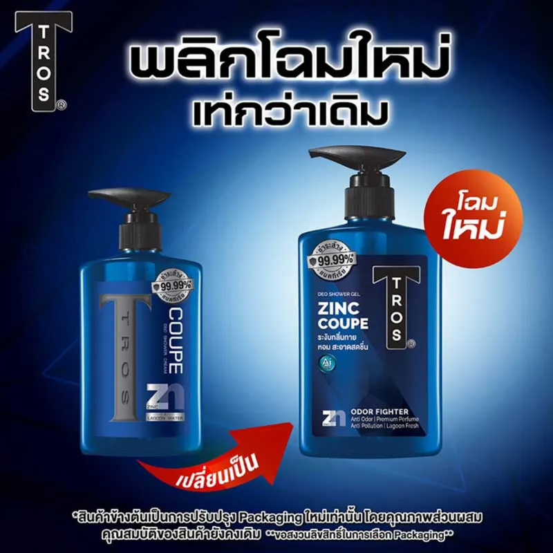 • ให้กลิ่นหอมระดับพรีเมี่ยม แนวสปอร์ต หอมสดชื่น ***TROS Coupe Deo Shower GelZinc & Lagoon Water 450ml ครีมอาบน้ำสูตร Lagoon Water Active ช่วยทำความสะอาดผิวคุณได้อย่างล้ำลึก ดูดซับสารตกค้างจากมลภาวะและสิ่งสกปรก พร้อมให้ความหอมแนวน้ำหอม Counter Brand หอมติดผิวนาน